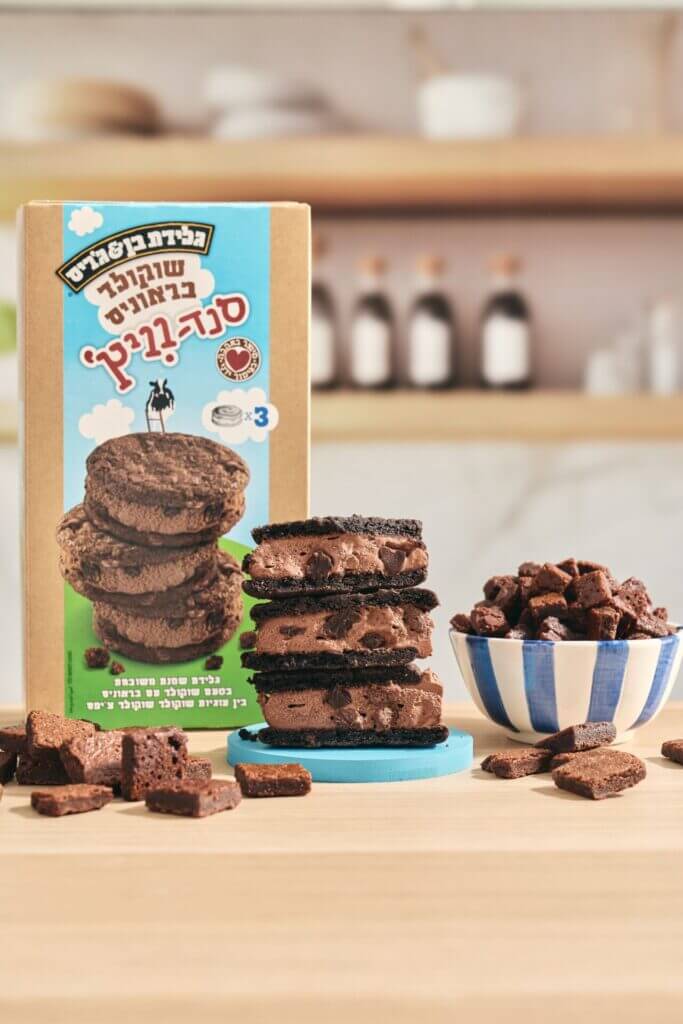 לאור הצלחת הסנד-וויץ' בצק עוגיות האהוב שהושק בקיץ שנה שעברה, בן & ג'ריס ישראל ממשיכים להפתיע את הצרכנים ומשיקה את מאגדת סנד-וויץ' שוקולד בראוניס החדשה, שמביאה חוויה מרגשת לאוהבי הטעם האייקוני השוקולדי ומאפשרת עוד דרך טעימה ונוחה ליהנות מהגלידה האהובה. המאגדת החדשה כוללת שלישיית סנד-וויץ' אישיים של גלידת שמנת משובחת בטעם שוקולד מלאה בצ'אנקים של בראוניס, בין שתי עוגיות שוקולד שוקולד צ'יפס רכות. מדובר בכל הטוב של בן & ג'ריס, בחוויית אכילה חדשה נוחה וקלילה, המתאימה לאירוח, לחלוקה עם חברים ובני משפחה וגם לרגע של פינוק אישי. לצד המאגדת החדשה יימכר הסנד-וויץ' שוקולד בראוניס גם בפורמט של יחידה בודדת.