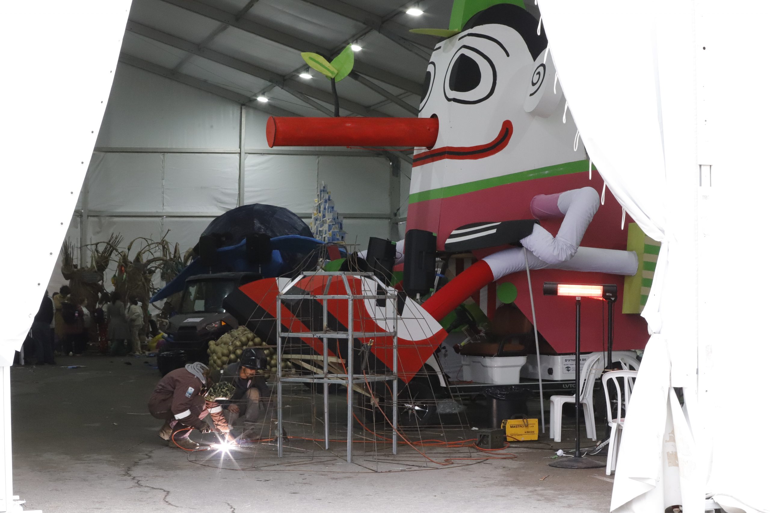 רק לפני שבוע, המציאות נראתה אחרת לגמרי. פסעתי לתוך אוהל העבודה העצום שהוקם עבור הכנות ובניית בובות הענק לעדלאידע של ירושלים. האוויר היה ספוג בריח של צבע, פוליאוריתן מוקצף ועץ גרוס. המולה ברוכה של עשייה מילאה את החלל. עשרות אמנים, סטודנטים ומתנדבים עמלו במרץ רב, חדורי מטרה להספיק להגיע מוכנים ליום רביעי – היום – שבו הייתה אמורה השיירה המרהיבה לצעוד במרכז הבירה.