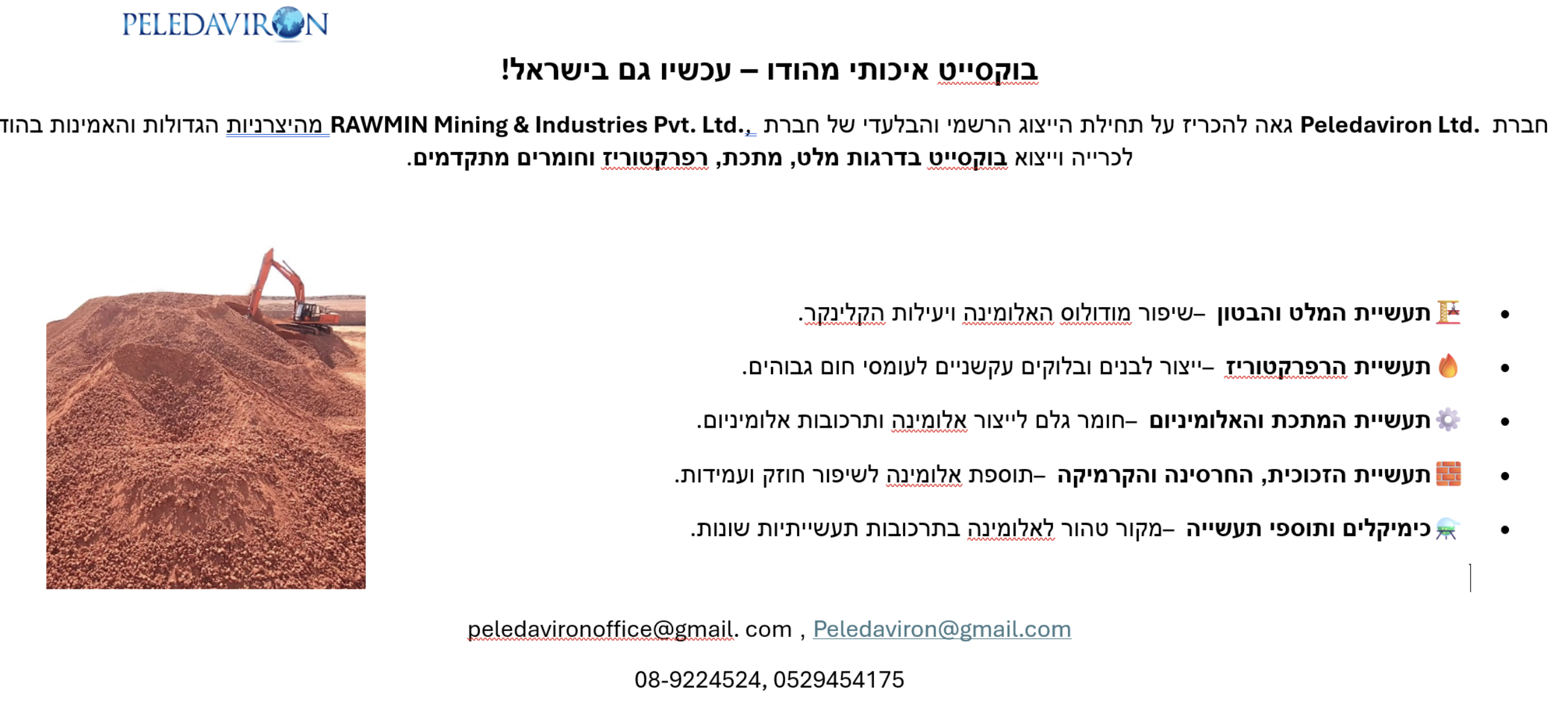 בוקסייט מהודו- עכשיו בישראל