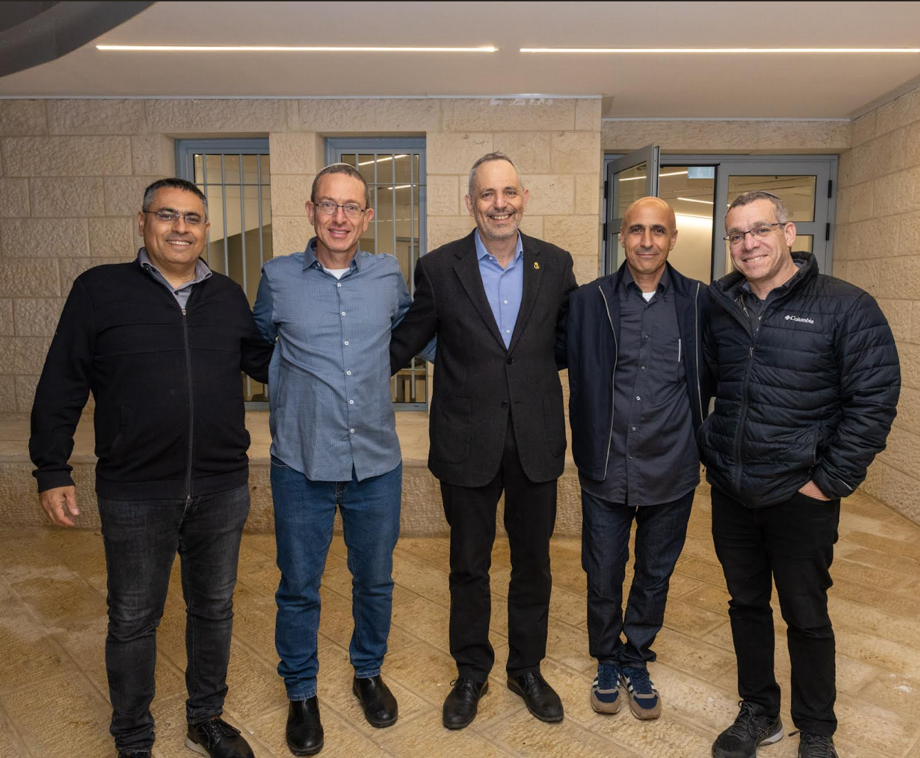 בתמונה: מימין רותם רביבי (ראש הנהגת הצופים לשעבר בירושלים), יניב מזר (ראש הנהגת הצופים בירושלים), אריק גרבלסקי (נשיא הקרן לירושלים), ברוך רובין ורוני חיים (ראשי שבט משואות)