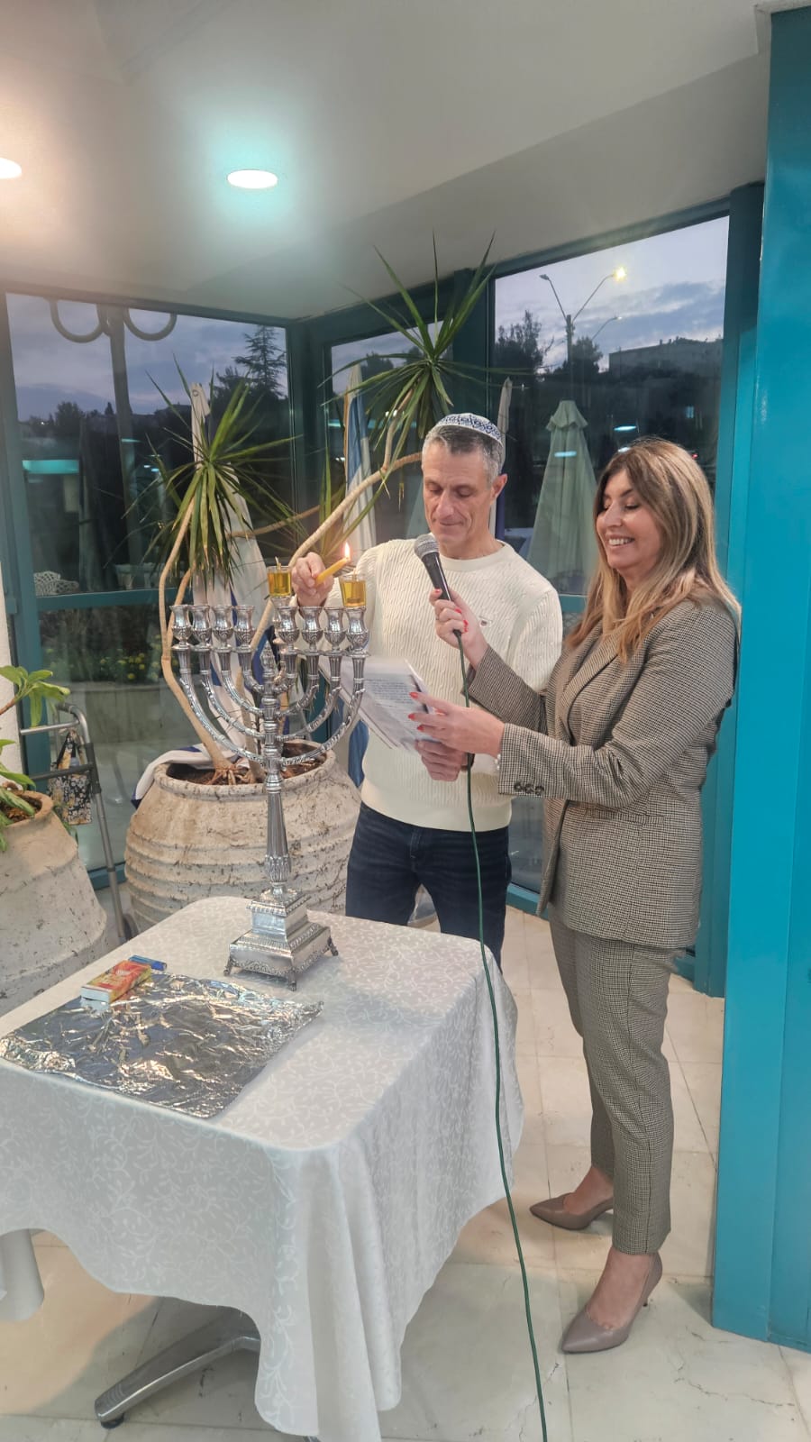 ראש מועצת מטה יהודה, מר אבישי כהן, הוזמן כאורח כבוד בטקס הדלקת נר ראשון של חנוכה בדיור המוגן נופי מוצא, שנערך בהשתתפות דיירי הבית ובמעמד מנהלת הבית החדשה, מרינה זורלה.