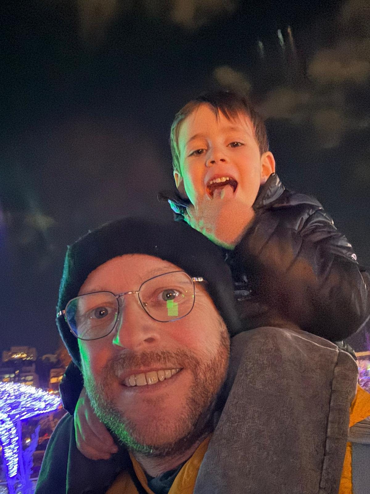 יש, הוא מצחיק גם ככה סתם, בחיים. מזהים? זהו אבי נוסבאום, אחד הקומיקאים הכי מצחיקים שיש לנו היום בארץ, שהגיע ביחד עם כל המשפוחה לתערוכת האורות המדהימה בגן הבוטני.