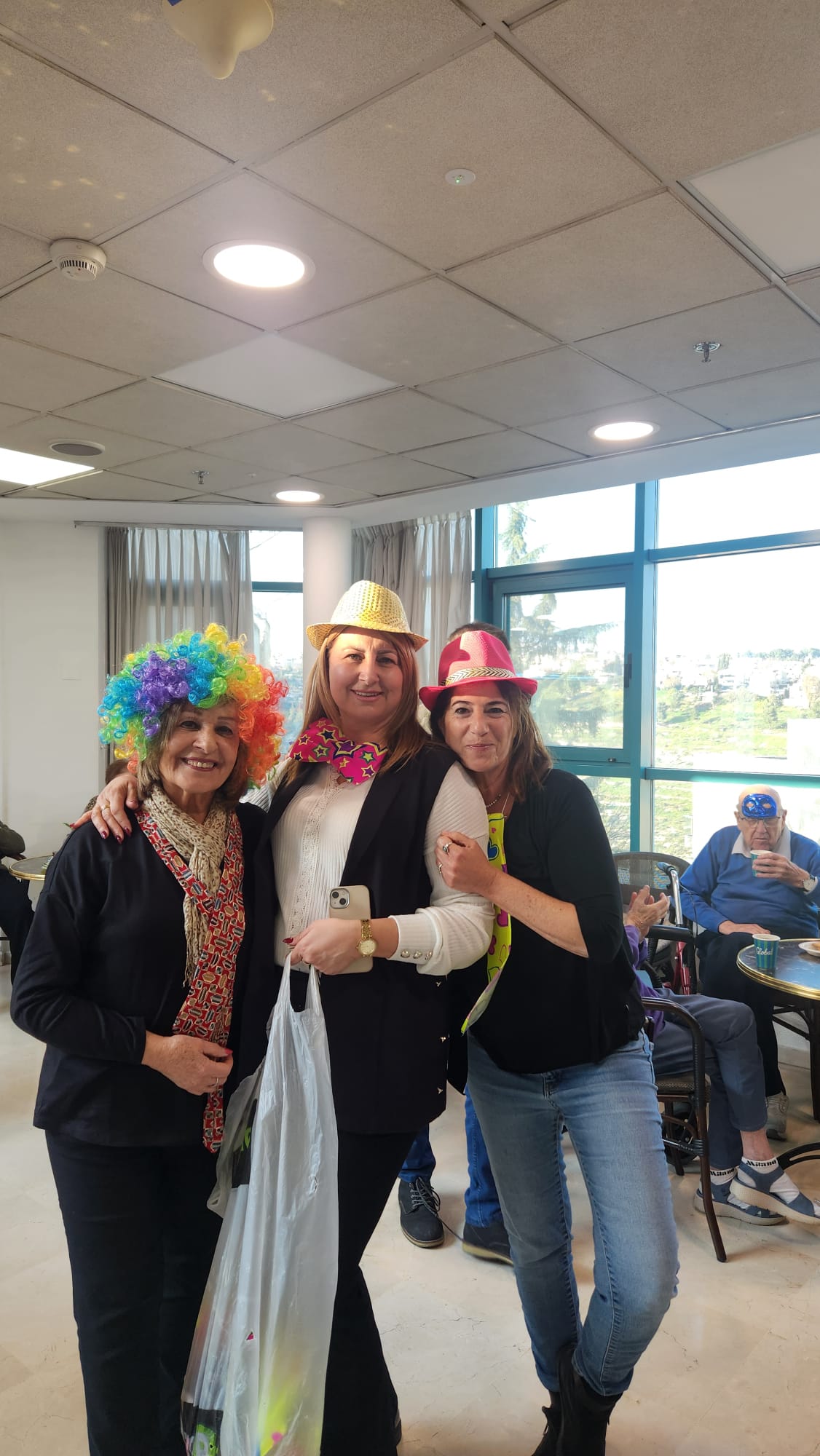 הדיירים נהנו משירי פורים עליזים, רקדו יחד, הרעישו ברעשנים וכמובן התכבדו באוזני המן מסורתיות. חלק מהדיירים הגיעו מחופשים, אחרים הוסיפו כובעים, מסכות ואביזרים משעשעים וכולם נכנסו לאווירת החג.