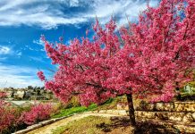 פריחת עץ הדובדבן בגן הבוטני גבעת רם ירושלים